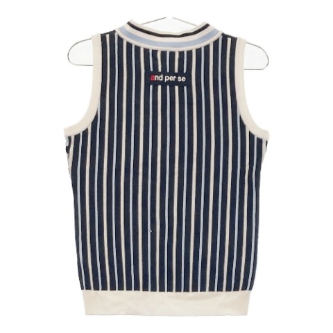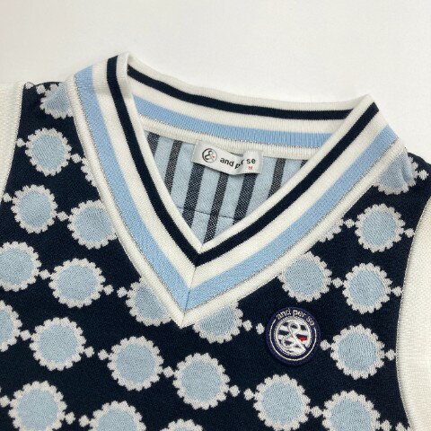 AND PER SE アンパスィ Vネック ニットベスト 総柄 ネイビー系 M 【中古】ゴルフウェア レディース