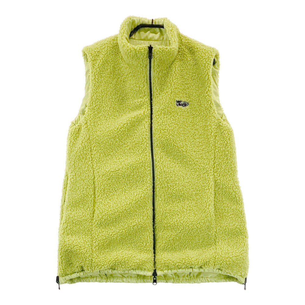 DANCE WITH DRAGON ダンスウィズドラゴン リバーシブルダウンベスト ボア 総柄 グリーン系 2 【中古】ゴルフウェア レディース