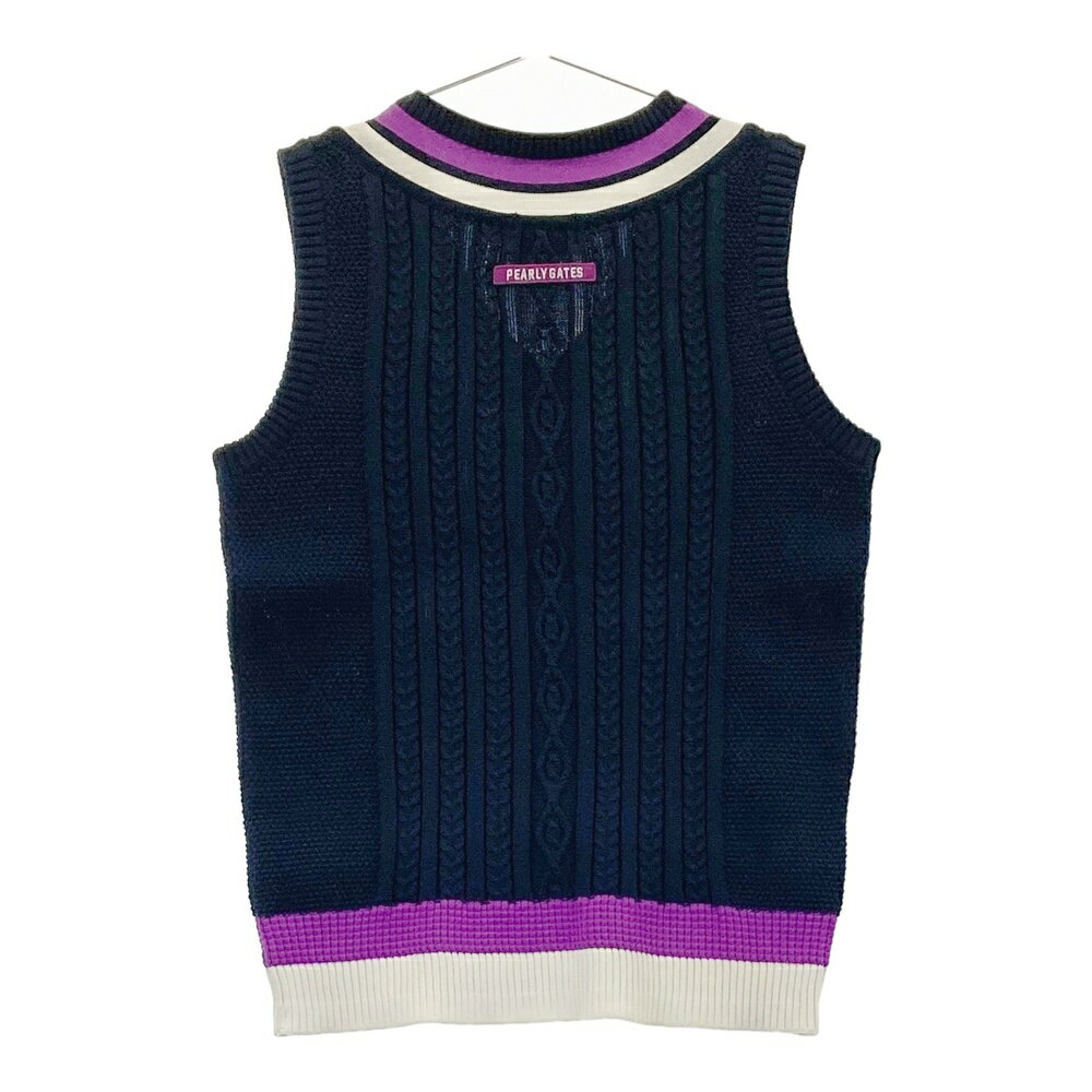 PEARLY GATES パーリーゲイツ Vネック ニットベスト ケーブル編み ネイビー系 0 【中古】ゴルフウェア レディース