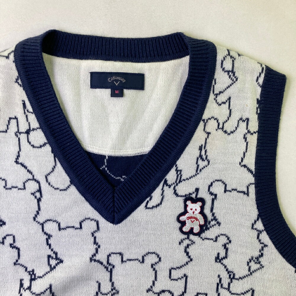 CALLAWAY キャロウェイ ウール混 Vネック ニットベスト ベア 総柄 ホワイト系 M 【中古】ゴルフウェア レディース