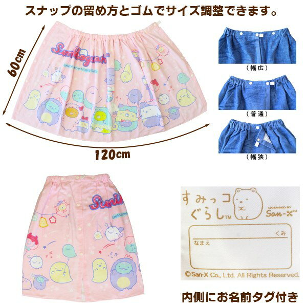 すみっコ ぐらし 巻きタオル 60cm ラップタオル スナップボタン すみっこ キッズ 子供 園児 小学校 低学年 海 プール メール便送料無料