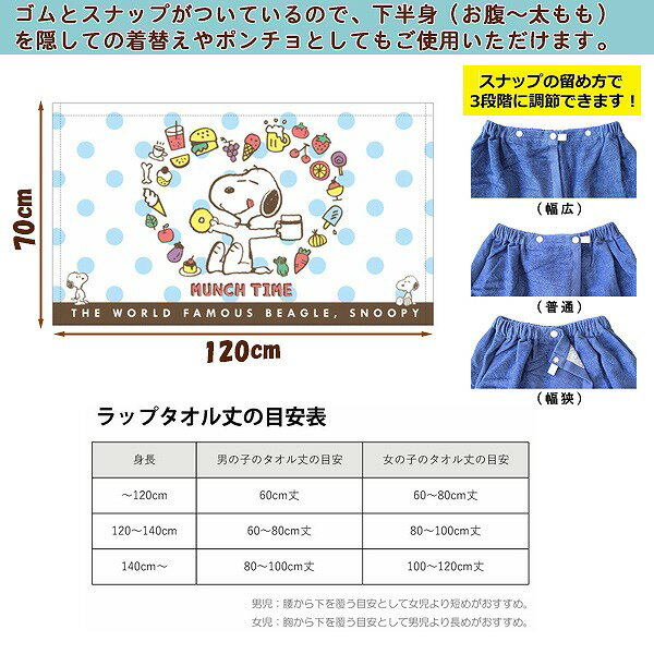 スヌーピー ピーナッツ 巻きタオル 70cm ラップタオル スナップボタン 幼児 小学生 子供 海 プール 水遊び 水泳 メール便送料無料