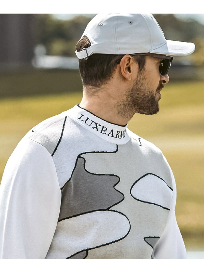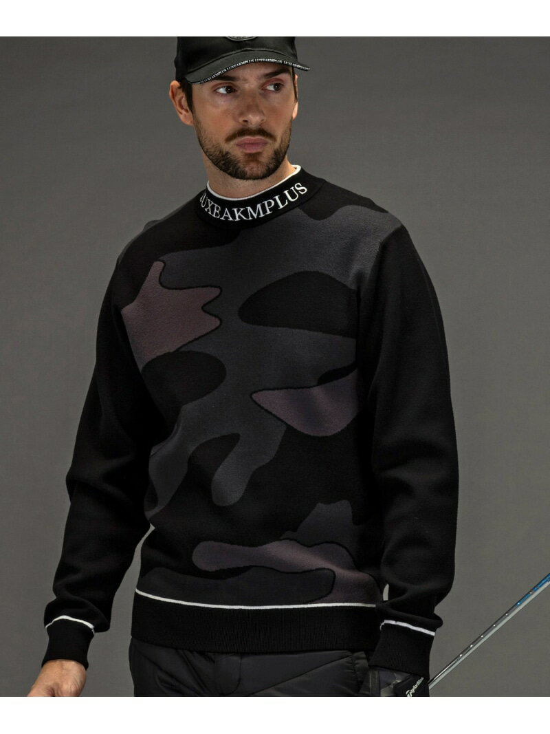 LUXEAKMPLUS LUXEAKMPLUS ゴルフ ラインカモ長袖ニット シフォン トップス ニット ホワイト ブラック【送料無料】