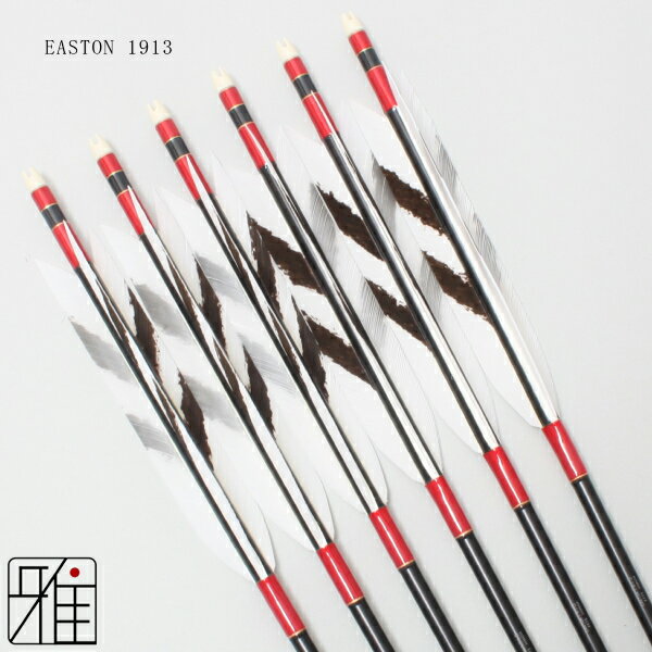 |弓道 イーストン ジュラルミン シャフト 弓道用に使用されるジュラルミンシャフトはEASTON社より輸入されています。 世界のトップメ−カ−として非常に多くのシャフトサイズを製造しています。 耐久性、均一性に優れ、 安価であることから弓道において広く普及しているシャフトです。 |弓道の矢 −EASTON Duralumin− 本来弓道用の矢は竹を加工して製作しておりました。いくつもの竹を切り、選別し矢を製作します。このため竹の矢は、非常に高価なものとなってきました。 そこで、近年の現代弓道では、ジュラルミンシャフトが普及するようになり、現代弓道の普及につながっております。 数あるシャフトサイズから、近的用としては、EASTON社の2015・1913の2つのシャフトサイズを選びました。 矢尺が95cm以下で、弓力が12kg以下の方は、1913シャフト 矢尺が95cm以上で、弓力が13kg以上の方であれば2015シャフトをオススメさせていただきます。 近的競技においての安定飛翔をする上で十分な品質を持った弓道用の矢としてシャフトサイズで迷われることないように厳選いたしました。 【商品詳細】 弓道 近的用 ジュラルミン矢 イーストンシャフト 6本組 ■羽根種別:ターキー手描染羽 ■シャフト:EASTON1913 ■付属品:筈4個・矢尻2個