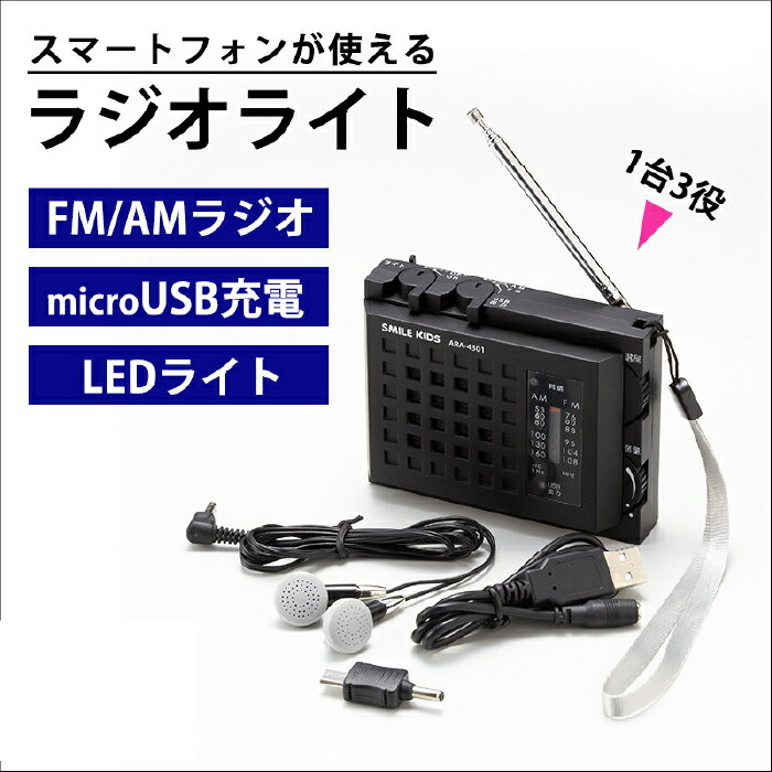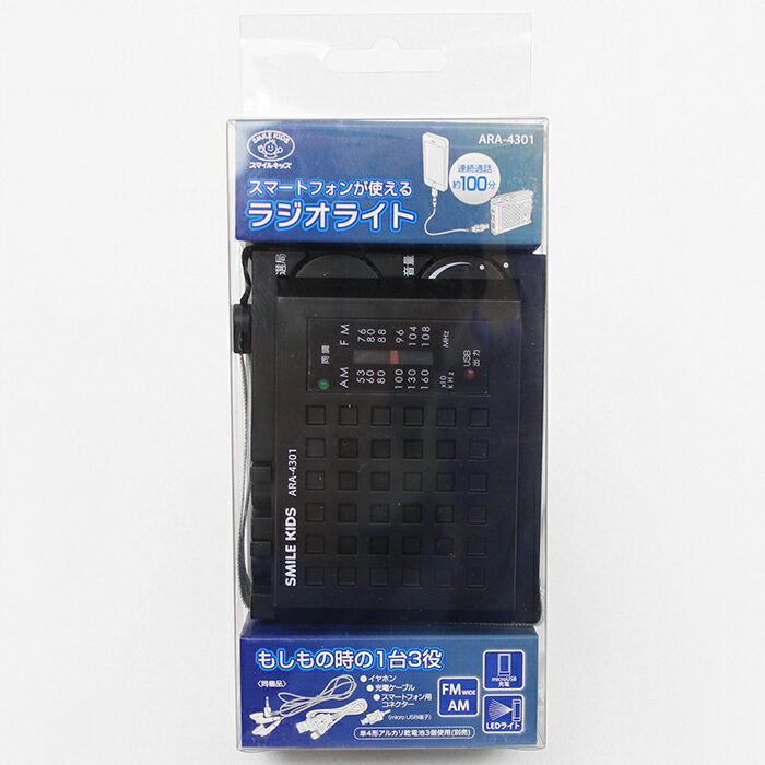 【ブラックフライデー期間P最大32倍】防災グッズ 防災 災害 車中泊 避難所 避難グッズ ラジオ ライト LED SMILE KIDS(スマイルキッズ) スマートフォンが使えるラジオライト ARA-4301