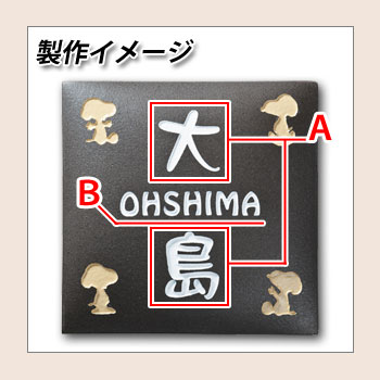 タイル表札 スヌーピー表札 レイアウトBタイプ 人気キャラクターのスヌーピーの可愛いデザインタイル表札! 販売条件 ◆詳しくはこちらをご確認ください サイズ 約W145xH145xD22mm 重量:約0.75kg カラー 本体:アークブラック 文字色:白 デザイン:クリーム 書体 書体50種類 材質 タイル 備考・注意 ※希望指定文字を購入手続きのSTEP3にてご記入ください。 ※記入する場所も同じくお書き添えください。<例>Aの指定文字:草野 など。 ※受注生産品につき配送には約10日~14日程度必要となります。 ※イメージ画像はイメージサンプルとして販売内容以外の商品があります。必ず内容を確認ください。 ※イメージ画像は使用するブラウザにより色が違って見える場合があります。 ※施工には、専門的な知識と、道具、技能が必要となります。お近くの工事店 (例:外構をした会社)にて設置を依頼して頂くようお願い致します。 ※ネームプレートのお名前レイアウト作成は3回目より有料¥1200円頂きます。 ※受注に至らない場合も¥1200円頂きます。 分類 【表札】【貼り付け施工】【タイル製】【ナチュラルモダン】【ラブリー】【丸三タカギ】【FACE10】【SNOOPY】【PEANUTS】タイル表札 スヌーピー表札 タイル表札スヌーピー表札はPEANUTS(ピーナッツ)の人気キャラクタースヌーピーのデザインを入れた可愛いタイル表札です! 丸い曲線が可愛くやさしいソフトなイメージがシンプルモダン住宅やナチュラルモダン住宅を可愛く飾ります! スヌーピー好きの方にはたまらないPeanuts Collectionのタイル表札で住宅のワンポイントとして可愛く演出してください! 大人気! 表札付きポスト もオススメ!ポストと表札の購入をお考えの方は断然オトク! ▲郵便ポスト クルム SWE エクスポスト 名入れタイプの購入はこちらをクリック! ▲レイアウトAタイプはこちらをクリック! ▲レイアウトBタイプはこちらをクリック! ▲レイアウトCタイプはこちらをクリック! ▲レイアウトDタイプはこちらをクリック! ▲レイアウトEタイプはこちらをクリック! レイアウトBタイプ 書体を下の一覧からお選びください。 その後希望ネーム文字を入力下さい。 <左のサンプルを頼む時の例> 漢字書体:D流隷体 英字書体:B-Mホボ体 Aの希望文字:大島 Bの希望文字:OHSHIMA ※文字の記入が不要な場所には「文字記入不要」と入力ください。<例>Aの希望文字:文字記入不要 など ※書体はレイアウトによって非対応の場合があります。購入時に選べない書体は非対応書体となります。
