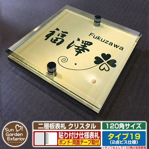 【安心保証付】【周年記念特価 ポイント5倍】二層板表札 クリスタル Type19:2点ビス仕様【サイズ:120×120mm】 イメージ画像:Dデザイン(3ゴールド) YKKap ルシアスポストユニット 三協アルミ ステイム 機能門柱 機能ポールにも取付可能 貼付け 表札