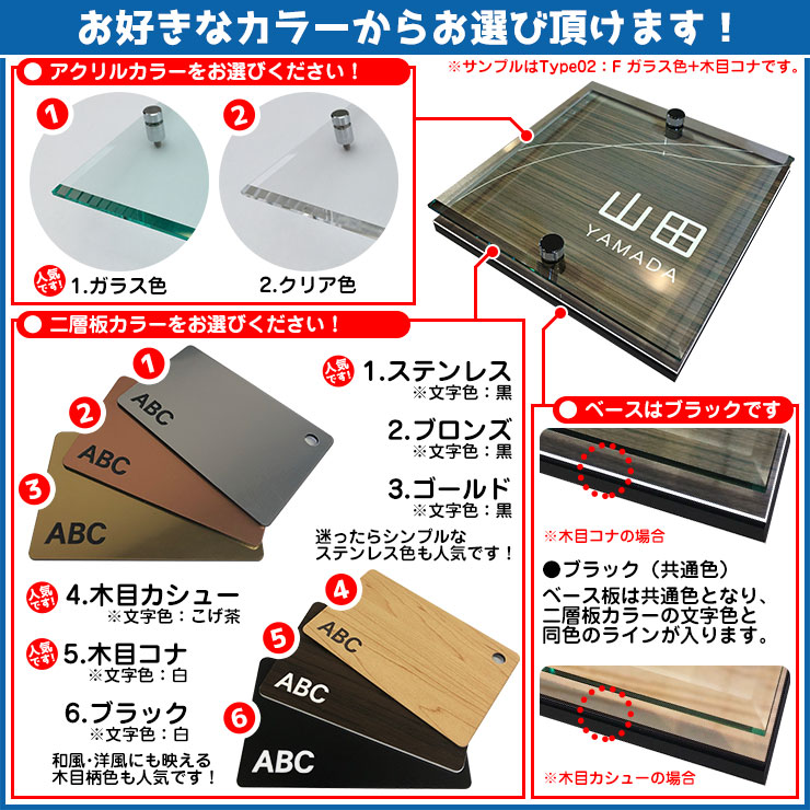【安心保証付】【周年記念特価 ポイント5倍】二層板表札 クリスタル Type25:2点ビス仕様【サイズ:120×120mm】 イメージ画像:Bデザイン(4木目カシュー) YKKap ルシアスポストユニット 三協アルミ ステイム 機能門柱 機能ポールにも取付可能 貼付け 表札
