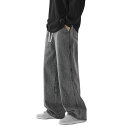 【送料無料】[netero] ワイド デニムパンツ メンズ ジーンズ 無地 ジーパン 調整紐 イージー ワイドパンツ 秋 冬 春 色:グレー、サイズ:3XL