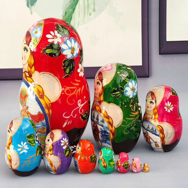 マトリョーシカ ロシア 人形 民芸品 土産物 手作り人形 手描き オブジェ 10個組 インテリア雑貨 洋風 ギフト プレゼント 北欧雑貨 伝統工芸 おもちゃ 飾り 誕生日 キッズ 子供 部屋 ハロウィン クリスマスja704c0c0x0