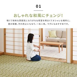 【新生活】洗えるい草風カーペット やなぎ 江戸間8畳 (348cm × 352cm) (グリーン)【取寄商品】【北海道・沖縄送料別】