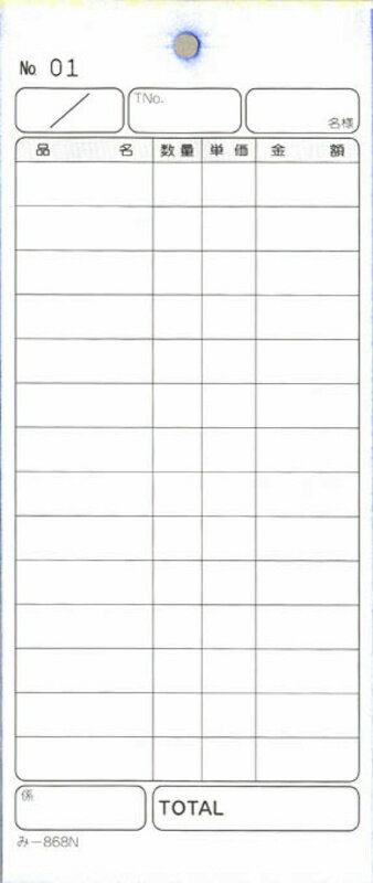 2枚複写式伝票 200冊 み-868N / 通しナンバー入 / みつや お会計伝票 複写式伝票 通しナンバー入 大口割引