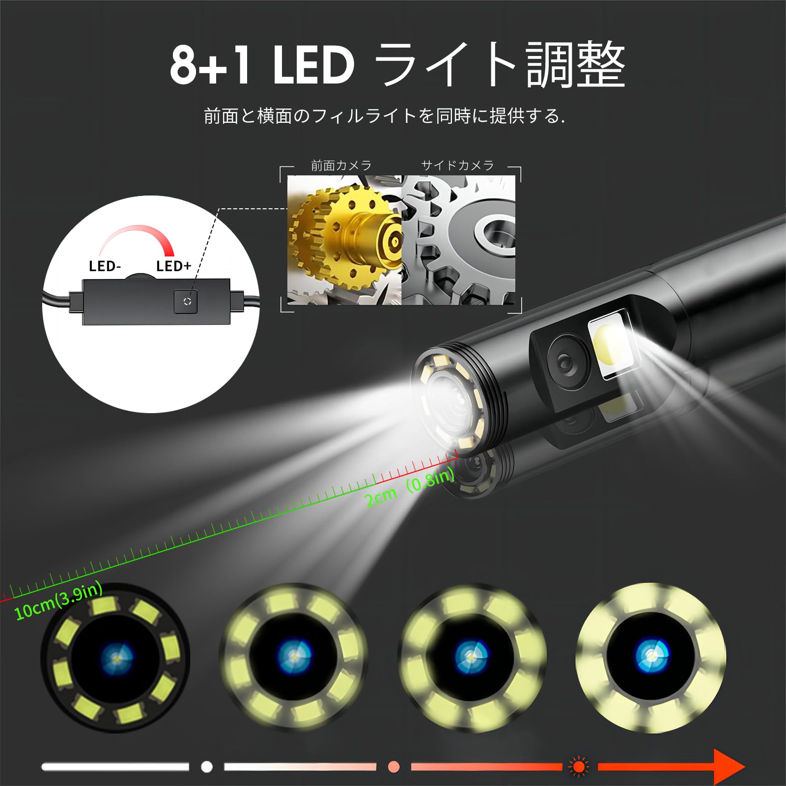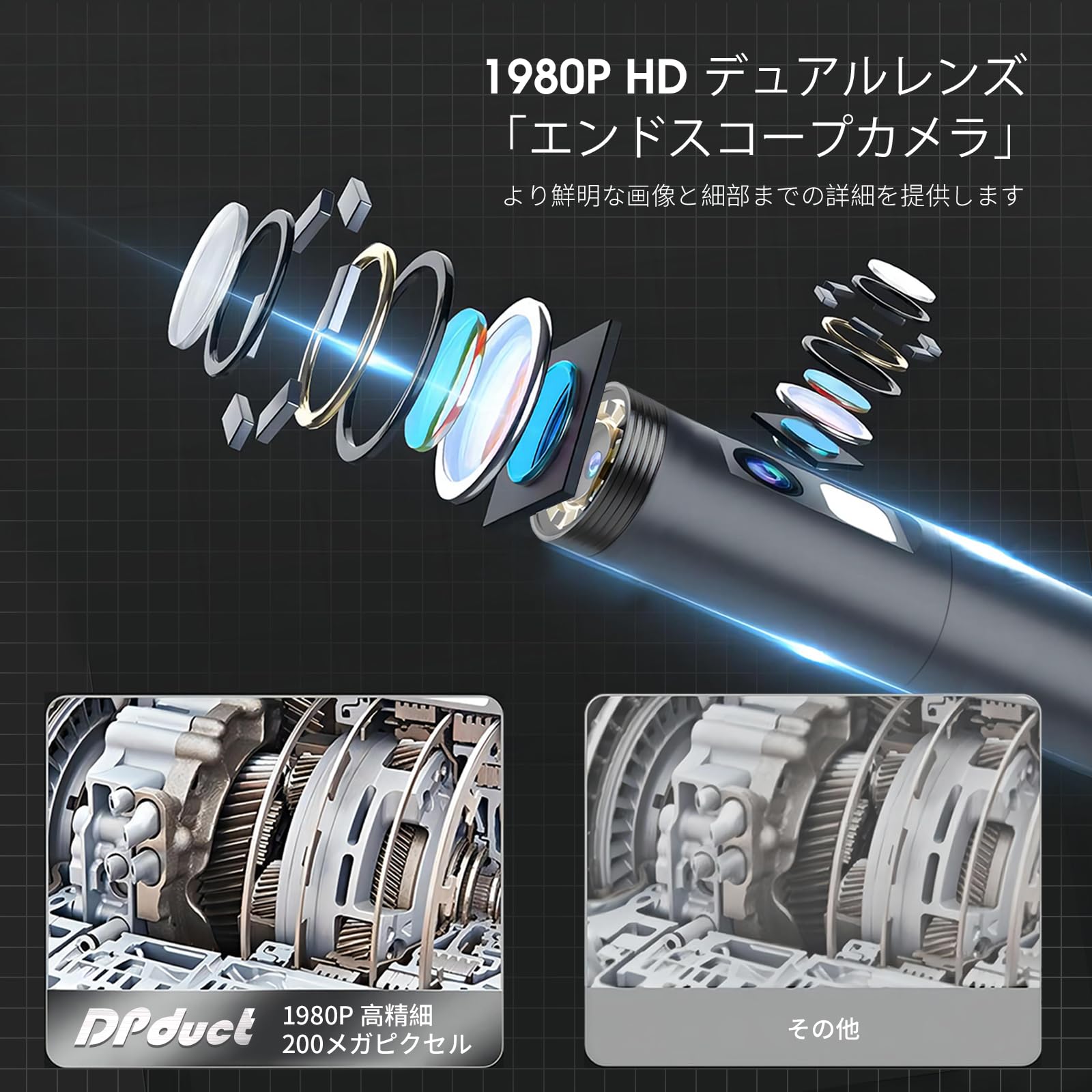 ◆【デュアルレンズ機能】このボアスコープには、メインカメラの側面に1920P HDレンズを追加し、パイプラインの側面をより簡単に検出できるようにしました。 トグルショットボタンは、デュアルレンズ機能をより有効に活用するのに役立ちます。FOV70°により、内視鏡カメラは狭い場所でも広い視野角を実現できます。◆【7.9mm一体型プローブ&IP67防水】このスコープカメラは過酷な水中環境にも安心して対応できます。 明るさを調整できる8+1つのLEDライトが内蔵されており、水中エリア、隙間、穴の検査が簡単に行えます。 あらゆる種類の暗い場所や暗い場所、湿った場所や濡れた場所などに適しています。◆【簡単接続】「Useeplus」アプリを端末にダウンロードしてインストールします。 内視鏡ケーブルをスマートフォンと接続しましょう。 簡単な操作でリアルタイムの映像を画面上に表示できます。◆【5Mセミリジッドケーブル】セミリジッドケーブルは、素早く広げたり巻き取ったりできるため、柔軟性と剛性がうまく組み合わされています。 家の隅々まで曲げたり伸ばしたりできるので、パイプや小さなスペースに入り込んで探って宝物を見つけるのに最適で、理想的な家の修理ツールです。◆【100%満足サービス】内視鏡カメラ*1、5Mセミリジッドケーブル*1、付属品:マグネット*1、フック*1、ミラー*1、保護キャップ*1、マニュアル*1。 24 時間のプロフェッショナルで親切なアフターサービスと 3か月の無料保証を提供します。 内視鏡カメラについてご不明な点がございましたら、お気軽にお問い合わせください。 私たちは常に最高のサービスを提供するためにここにいます。