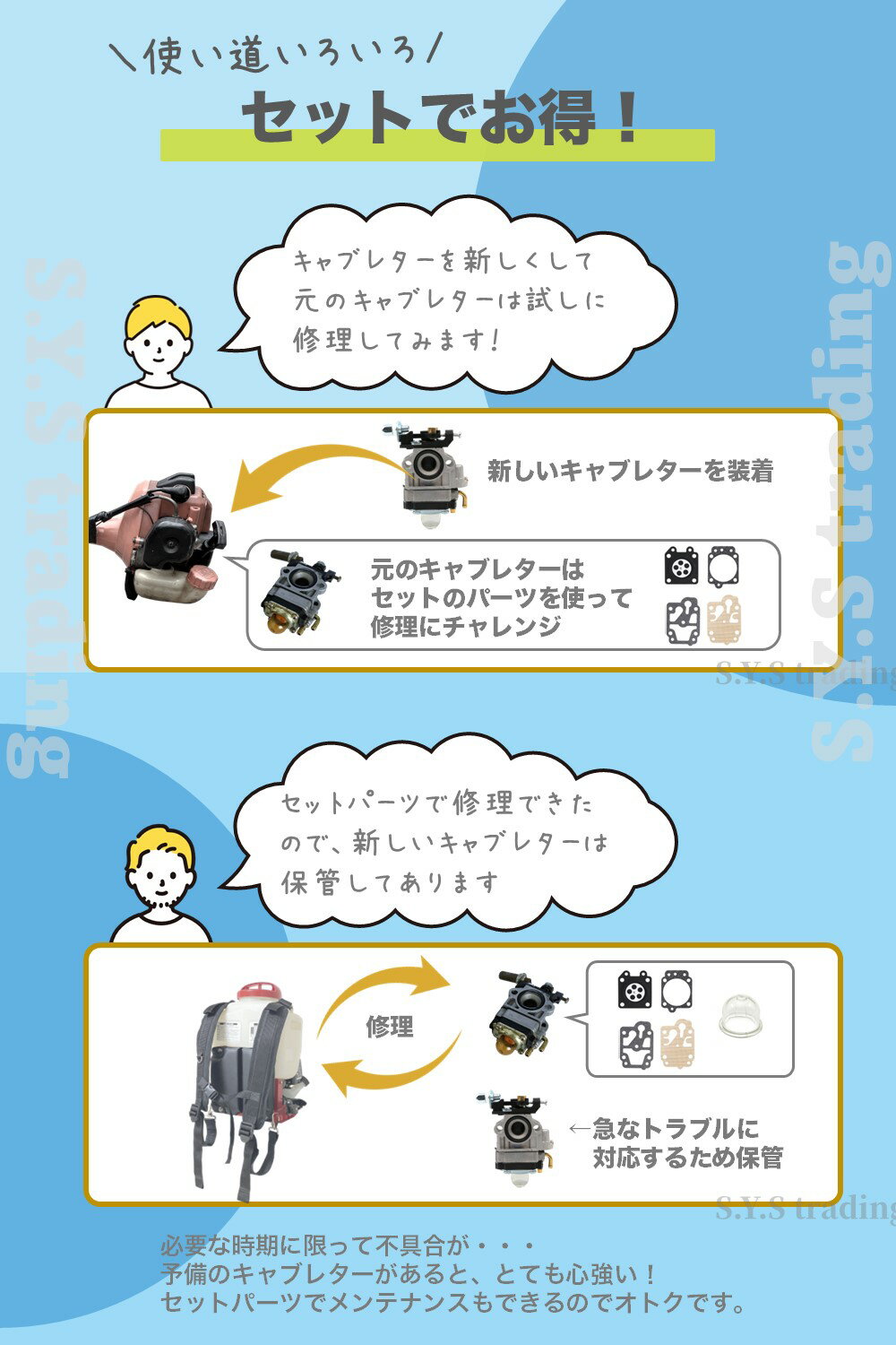 WYKタイプ キャブレター 互換品 刈払機 草刈機 43cc~52cc 対応 ガスケット・燃料フィルター付 修理キットセット