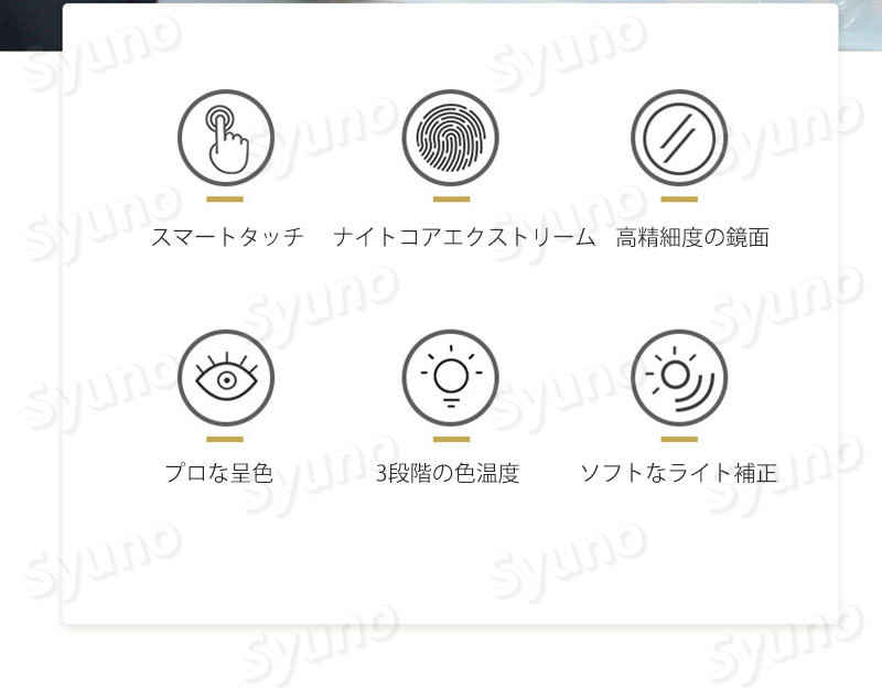 商品情報 製品名:LED発光の化粧鏡 カラー:ホワイト/ゴールド/ブラック 電源入力:110V-220V通用 色温度の範囲:3000K?6000K 素材:メタルフレーム/高輝度ライトリング/高精細度の鏡面 サイズ:30* 47 産地:中国
