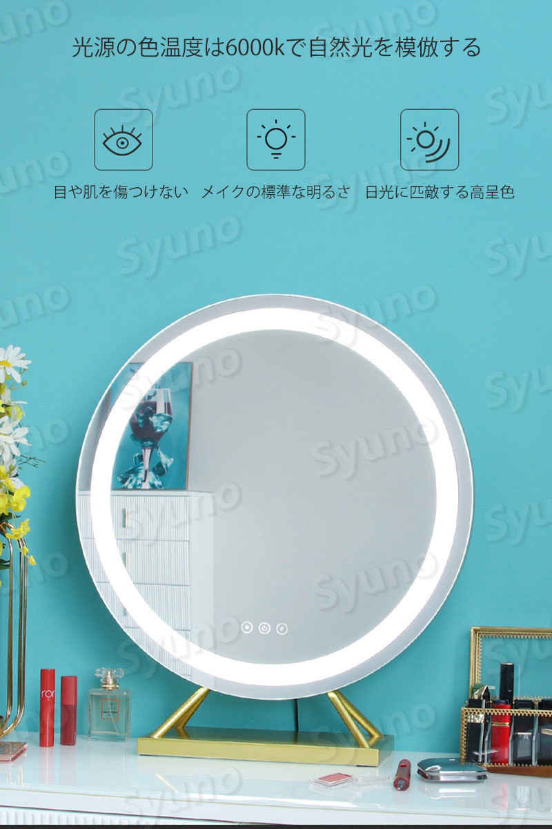 お買い物マラソン【P5倍】北欧風のスマートLED化粧鏡 スマートタッチ ソフトなライト補正 卓上スタンドミラー 片面 卓上鏡 化粧ミラー LEDミラー 卓上ミラー LED化粧鏡 明るさ調節可能