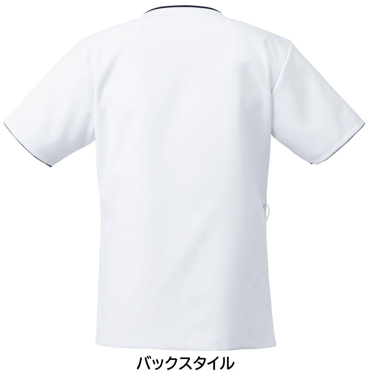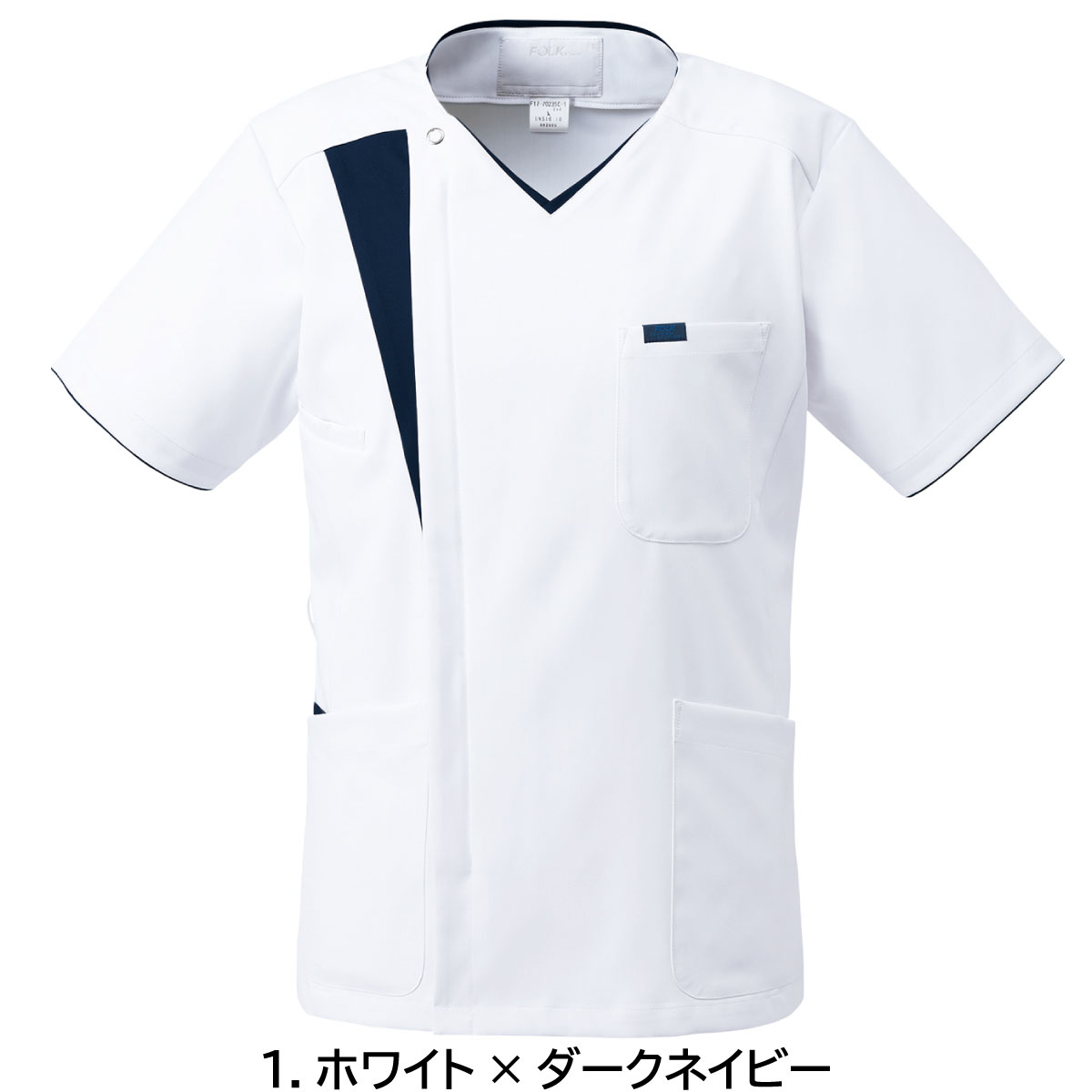すぐに動き出せる。 ZiP SCRUB 羽織って着るジップスクラブ®は、顔まわりを気にせずスピーディーに着脱可能。医療従事者の声にお応えし、動きやすく機能性に富んだデザインも人気の理由です。 使用している生地はコレ! ノンPUストレッチ ポリウレタンを使用せずに高伸縮性を実現させ、洗濯堅牢性も備えた、 新しいストレッチ素材です。織りの密度が高く、滑らかで心地よい肌触 りの素材です。 ネオα 洗濯性を改善しながらも、柔らかな風合、優れた吸水性と拡散性、ドライ感を実現させたストレッチ素材です。 ★白衣とスクラブのハイブリッド。白だから着やすく揃えやすい! 【MATERIAL】 ■素材:ノンPUストレッチ/ネオα ■混率:ポリエステル100%/ポリエステル100% ■ストレッチ ■透け防止素材 ■制電糸 ■吸汗・速乾 ■メンズ(男性用) ■半袖 ■右脇箱ポケット ■左胸箱ポケット ■両腰ポケット(右内ポケット付) ■右後脇ループ付 【COLOR】 ■1.ホワイト×ダークネイビー 【SIZE】 ■S/M/L/LL/BL/4L ジップスクラブ®のデザインは意匠登録されています。(意匠登録1491398 号) ジップスクラブ® ならびにジップアップスクラブ® はフォーク株式会社の登録商標です。 ジップスクラブ®(登録第5634858 号)ジップアップスクラブ®(登録第5634859 号) ★☆女性用はこちら☆★