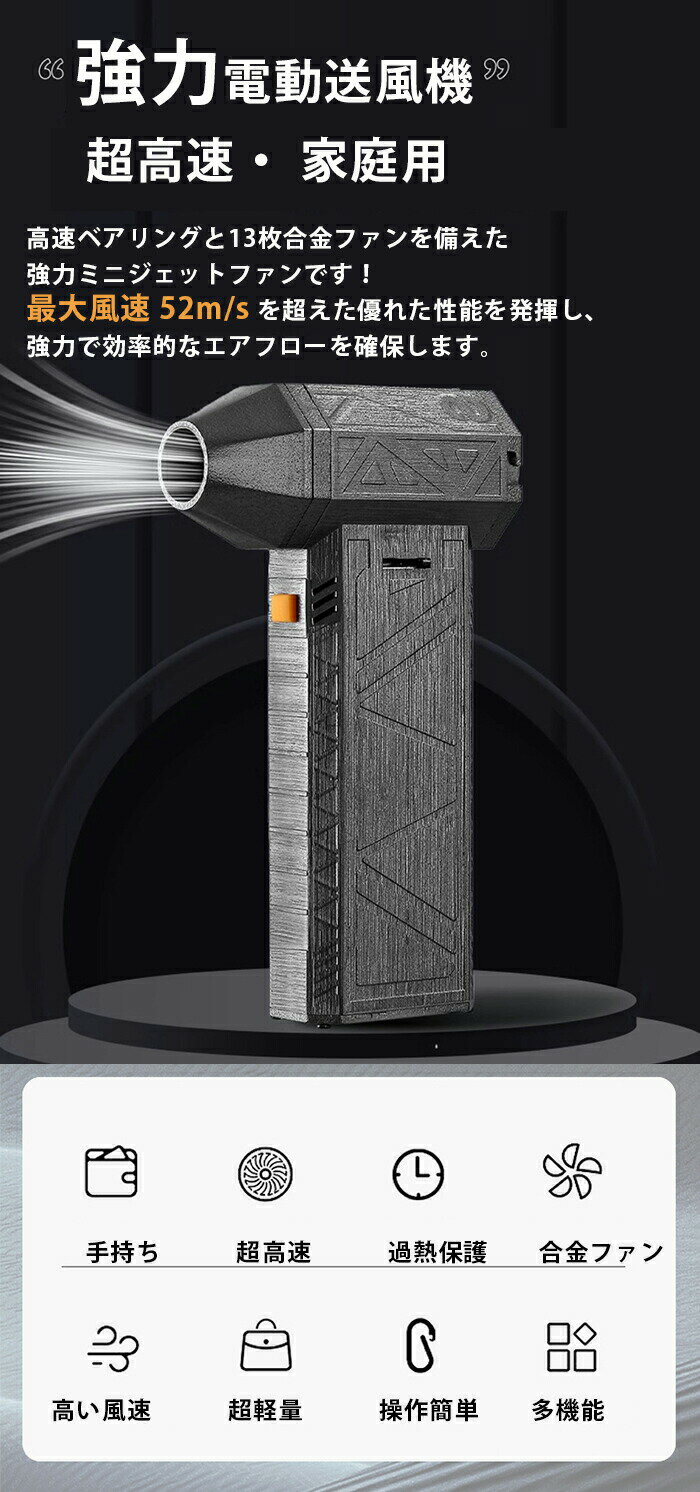 夏の対策 洗車 雪対策 ミニジェットファン ハイパワー 強力扇風機 電動送風機 ブロワー 強力 ターボジェットファン エアダスター ペットドライヤー 130000RPM 52M/S 8000mAh 送風機 ブロアー ジェットブロワー エアダスター 除雪