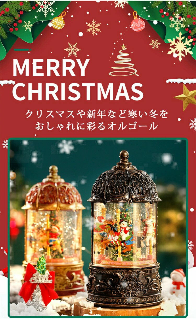 スマス置物飾り クリスマスオルゴール LEDライト内蔵 8曲自動ループ オシャレ 北欧 卓上 置物 飾り クリスマスプレゼント インテリア 雰囲気感 キラキラ クリスマスプレゼント