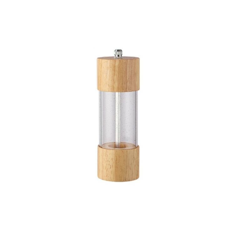 【2本組】胡椒ミル 木製ペッパーミル 透明 スパイスミル 手動 ソルトミル ブラックペッパー 黒胡椒 ミル コショウ 岩塩 スパイスボトル 調味料挽き 粗さ調節 山椒 花椒 キッチン小物 木目調 胡椒挽き おしゃれ 塩挽き こしょう
