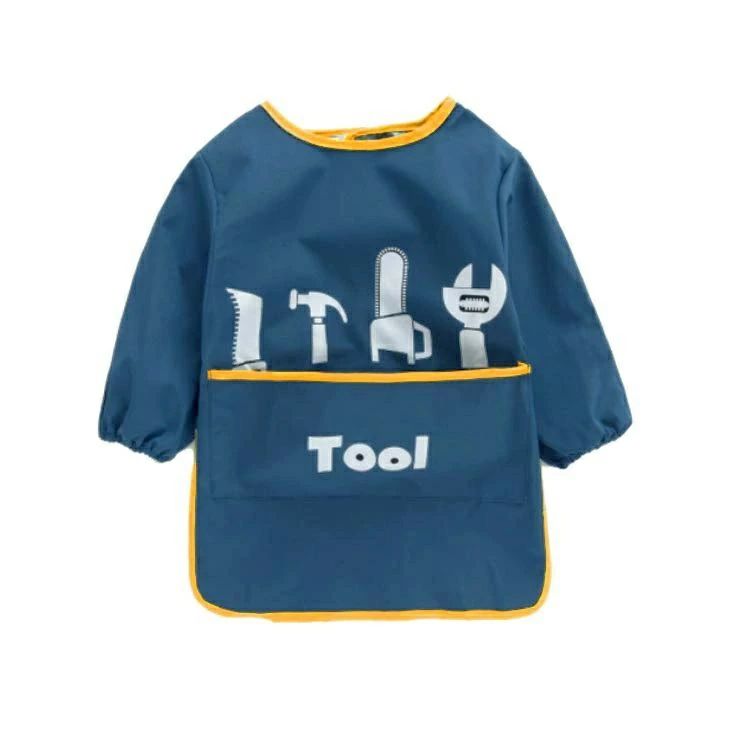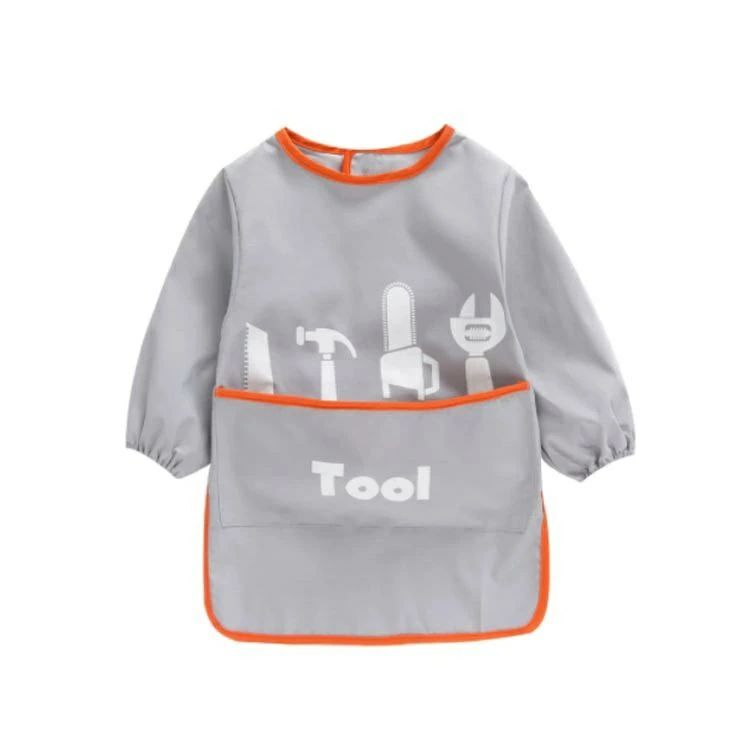 【送料無料】ポケットつき 子ども 子供 女の子 男の子 キッズ お食事エプロン ロング 汚れ防止 防水 長袖スモック ロング丈スモック