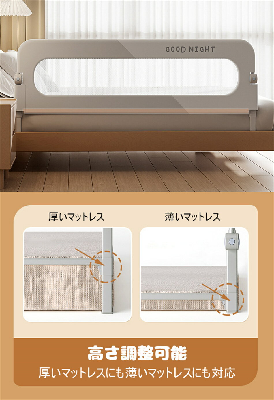 【カラー】 グレー無地、グレー、ピンク、ベージュ 材質:オックスフォード布、鋼管、プラスチック ご注意:ベッドフェンスの本体材質はオックスフォード布 サイズ:長さ80/120/150/180/200cm * 高さ70cm 商品名:子供用ベッドフェンス 生産国:中国 【この商品について】 ママが安心できるハイタイプ ベッドフェンス。しっかりと固定され、丈夫な構造でお子様がベッドからの転落防止、ふとんずれ、蹴り出し防止に最適です。また、無添加無臭の安全素材を使用され、敏感肌のお子様にもオススメです。(注意:下のパイプは伸縮式です、ボタンを押してインストールしてください。) 取り付けはとても簡単。母親一人でも簡単に組み立てられます。パネルは下へ180°折り収納でき、使わない時にはパタンを下げ、大人がベッド隣に座ったり、お子様と遊んたり、喋たりします。 角の所が滑らかな素材を使用され、細かい所までこだわり、お子様に最高な安全環境を提供します。目に優しい色で、しっとりした居住環境との組み合わせがより適切です。 様々の厚さのマットレスとプラットフォームベッドに対応できます。更に高品質オックスフォードを使用、通気性が抜群の上に、清潔もしやすく、ママが嬉しいアイテムです。 ※fこちらの対応と商品について何かご不満がありましたら、「レビュー」を付ける前に一度ショップとご連絡してお願いいたします、ショップの誠意を持って最後まで対応させていただきます。 ※商品には多少の個体差がございます。予めご了承uくださいませ。 ※発送途中で箱が潰れる可能性があります。ご理解お願いします。 ※PC環境・光の具合により、色や素材のイメージが写真と若干異なる場合がございます。 ※mモデル・写真に使用されているアクセサリー・小物は別途記載が無い限り付属いたしません。 ※商品のお色はお客様のPC環境によって多少色合い、見え方など違ってまいりますのでご了承下さいますようお願いします。 ※写真の色調はご使用のモニターの機種や設定により実際の商品と異なる場合があります。 ※商品のサイズは、全て平置きにて外寸を測定しております。 ※商品によっては±1cm〜3cmの誤差が発生してしまう場合がございます。予めご理解いただきますようお願い致します。 ※該当商品は他店と在庫共有です。タイミングにより、在庫ズレが生じる場合がございます。予めご了承ください。 ※iパッケージは改良のため予告なく仕様を変更する場合があります、ご理解いただきますようお願い致します。 メーカー希望小売価格はメーカーカタログに基づいて掲載しています