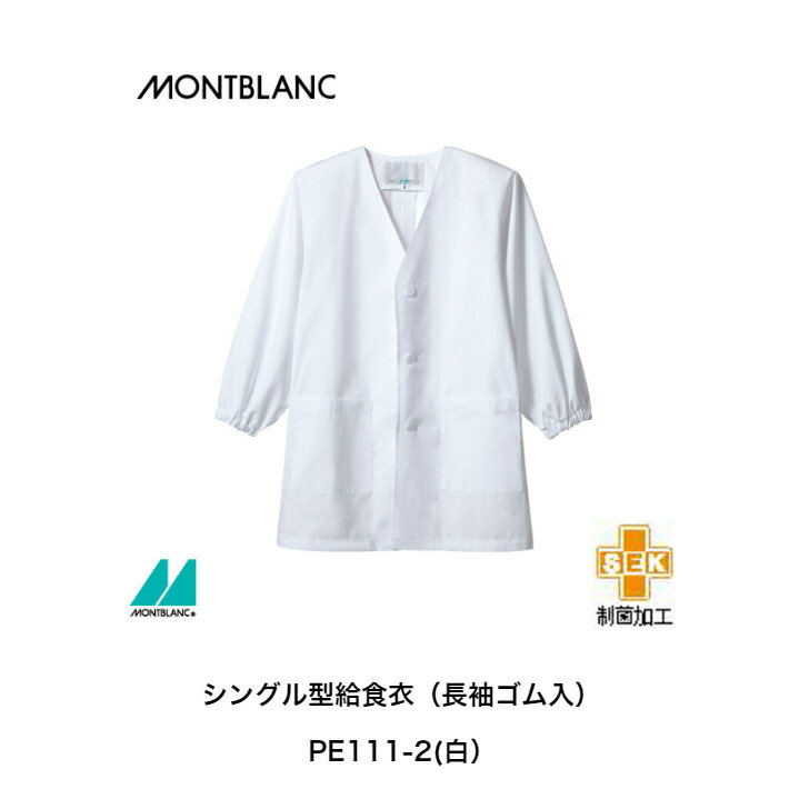 【1~2営業日内発送】安心安全 制菌加工 前開きシングル型給食衣 長袖 学校給食・飲食・カフェ 児童用給食衣 男女兼用 長袖 ゴム入り給食エプロン 給食PE111-2(白)PE111-5(イエロー)PE111-6(サックスMONTBLANC住商モンブラン