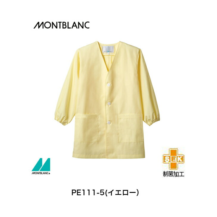 PE111-2(白)PE111-5(イエロー)PE111-6(サックス)シングル型給食衣 長袖 MONTBLANC住商モンブランの学校給食・飲食・カフェ 児童用給食衣 男女兼用 長袖 シングル型 ゴム入り 安心安全な制菌加工学校給食 住商モンブランの飲食・カフェ 児童用給食衣、抗菌機能を付与、グリーン購入法対象商品、「いただきます」までの時間が楽しくなるラインナップ 5