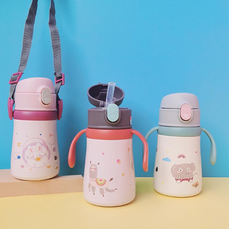ワンタッチ 両手 プレゼント 両手 ボトル 子供 360ml 出産祝い ショルダー付き 男の子 両手 子ども こども 赤ちゃん ベビー 女の子 キッズ 練習 トレーニング 保育園