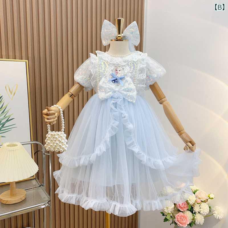 キッズ プリンセス ドレス アイシャ 女の子 ロリータ サマー 子供 冷凍 スカート 可愛い 綺麗 おしゃれ ピンク 青