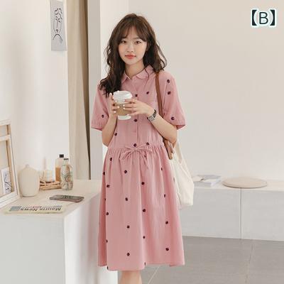 マタニティシャツ シンプル おしゃれ カレッジ 刺繍 青 ピンク