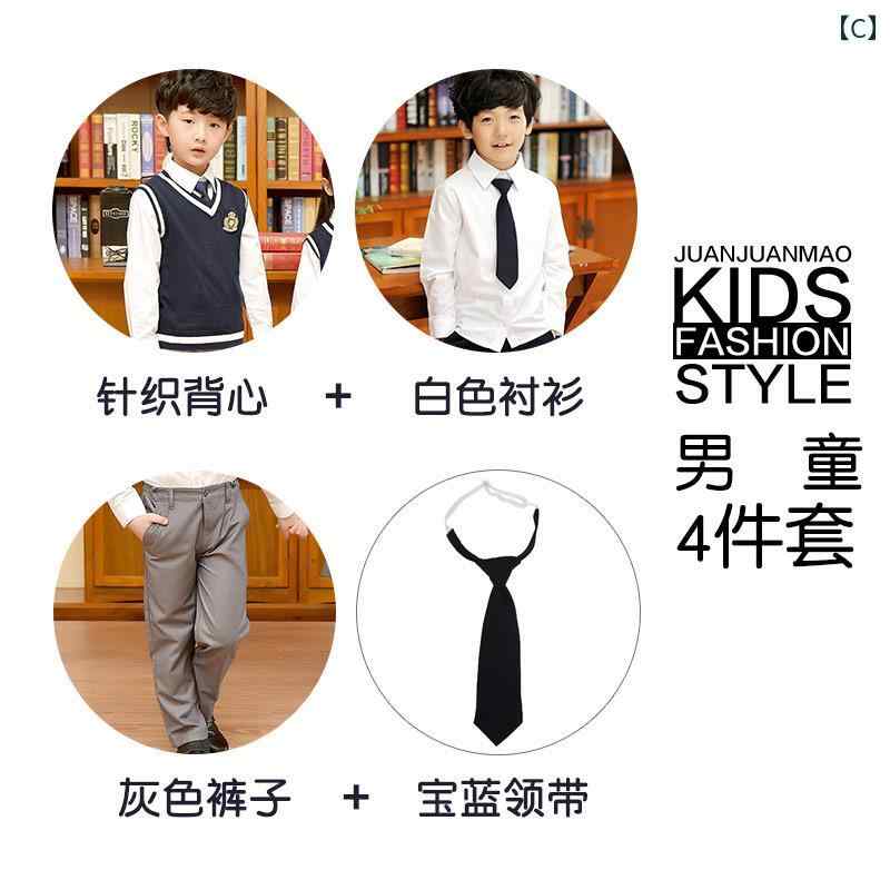 キッズ 子供 男の子 女の子 学生 服 セット 幼稚園 制服 春秋冬 セーター 英国のカレッジ 小学校 中学校 おしゃれ 綺麗 可愛い プルオーバー ブルー イエロー