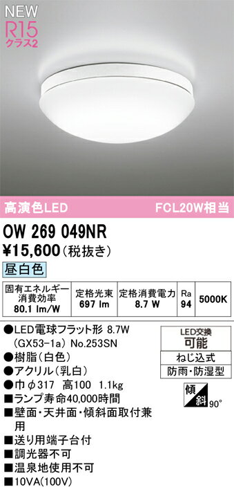 オーデリック OW269049NR エクステリア LEDポーチライト R15高演色 クラス2 昼白色 FCL20W相当 照明器具 屋外用 玄関灯 壁面・天井面・傾斜面取付兼用