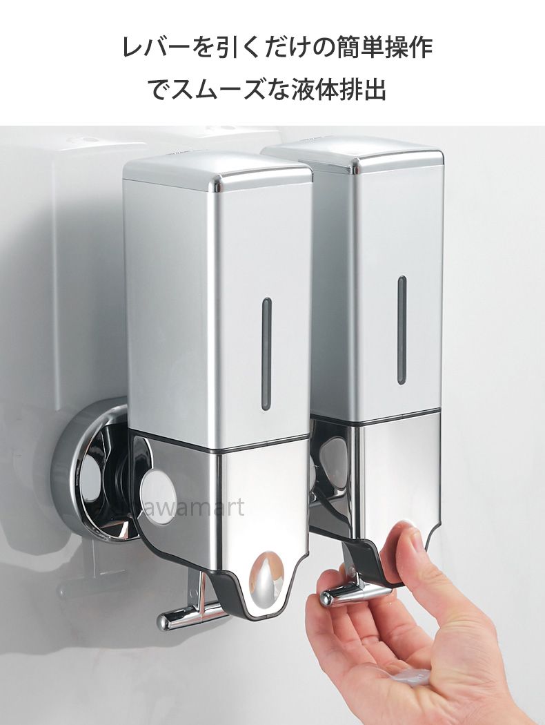 大容量 シャンプーディスペンサー 壁掛け 2連式/3連式 工事不要 鍵付き 手動 残量可視 一回2ml大吐出量 壁掛け 押し出す ディスペンサー シャンプーボトル コンディショナー