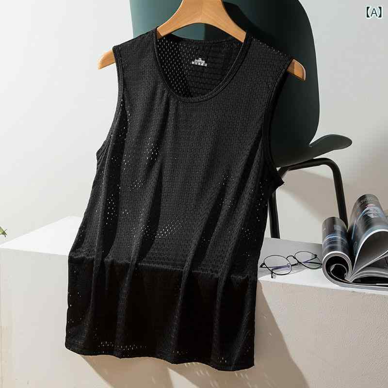 タンクトップ メンズ 男性用 ノースリーブ 接触冷感 アイスシルク メッシュ 通気性 スポーツ ウェア ポリエステル L XL XXL 3XL 4XL 5XL 黒 紺 ワインレッド 白 グレー