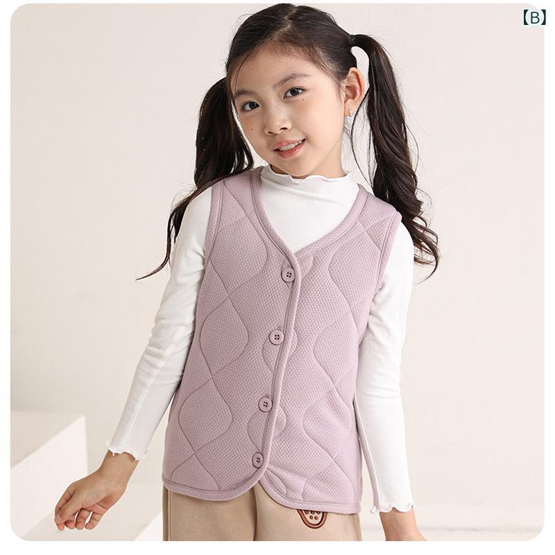 子供用ベスト 冬用 厚手 防寒 中綿入り スクールベスト 男女兼用 キッズ あったか 重ね着 チョッキ 8歳以上 120cm 130cm 140cm 150cm 160cm 170cm ピンク 杏色 グレー 紺色