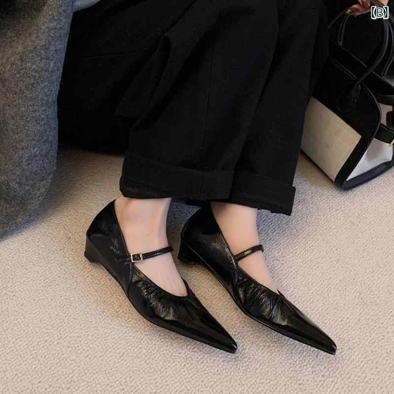 パンプス レディース 本革 メリージェーンシューズ ポインテッドトゥ ローヒール フラット ストラップ 履きやすい 歩きやすい かわいい おしゃれ カジュアル オフィス 通勤 フォーマル 普段使い レッド ブラック 春夏 秋冬