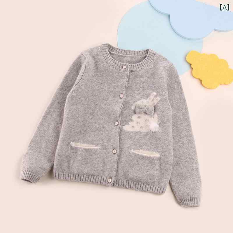 子供服 ニット カーディガン ベビー服 ウサギ柄 かわいい 羊毛 長袖 アウター 秋冬 グレー 90cm 100cm 110cm 120cm 130cm 140cm