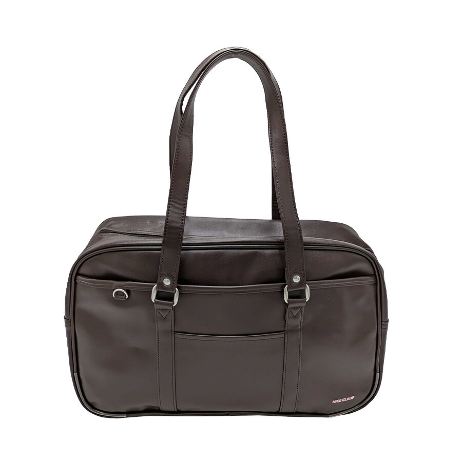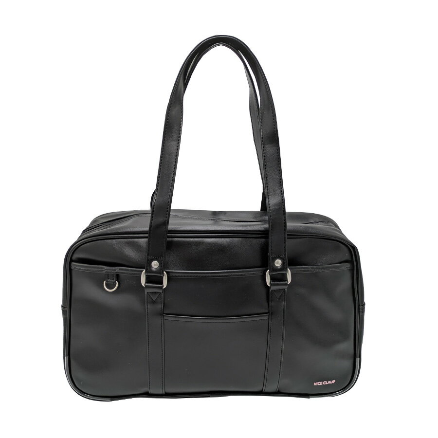 【NICE CLAUP】 nc378 合皮 スクールバック 手持ち かばん カバン 鞄 バッグ 通学 高校生 普段使い 使いやすい シンプル レディース ギフト プレゼント ブラック