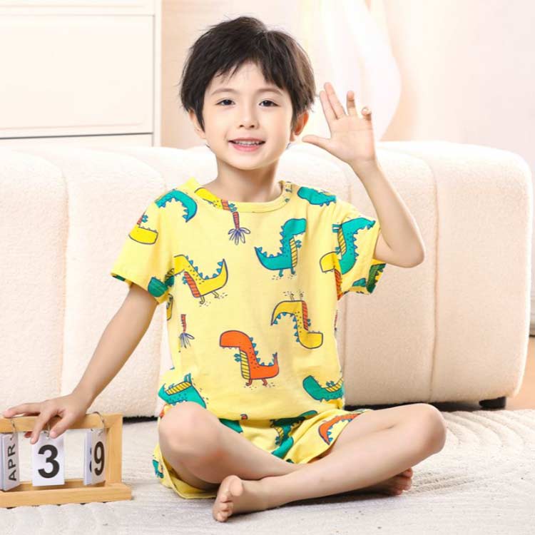 100-160cm!可愛い上下セットのパジャマ通気性が良く、サラりとした肌ざわりの素材。 ウエストゴムでらくらくのリラックスウェア綿混なので吸汗性が良く、汗ばむ季節にも快適な着心地。丈夫で型崩れしにくいため、ご家庭でのお洗濯にも適していますおうち時間にはもちろん、旅行や宿泊行事にもおすすめです。 サイズ 100 110 120 130 140 150 160 サイズについての説明 100着丈40バスト64ウエスト44パンツ丈32おすすめ身長90-100cm 110着丈43バスト68ウエスト46パンツ丈33おすすめ身長100-110cm 120着丈46バスト72ウエスト48パンツ丈34おすすめ身長110-120cm 130着丈49バスト76ウエスト50パンツ丈36おすすめ身長120-130cm 140着丈51バスト80ウエスト53パンツ丈37おすすめ身長130-140cm 150着丈54バスト84ウエスト55パンツ丈38おすすめ身長140-145cm 160着丈57バスト88ウエスト57パンツ丈39おすすめ身長145-155cm ※サイズは平置き実寸になります。サイズ表の実寸法は商品によって1-3cm程度の誤差がある場合がございます 素材 綿、ポリエステル 色 ブルー グリーン イエロー ライトブルー ベージュ イエローグリーン 備考 ●サイズ詳細等の測り方はスタッフ間で統一、徹底はしておりますが、実寸は商品によって若干の誤差(1cm〜3cm )がある場合がございますので、予めご了承ください。 ●商品の色は、撮影時の光や、お客様のモニターの色具合などにより、実際の商品と異なる場合がございます。あらかじめ、ご了承ください。 ●製品によっては、生地の特性上、洗濯時に縮む場合がございますので洗濯時はご注意下さいませ。 ▼色味の強い製品によっては他の衣類などに色移りする場合もございますので、速やかに(脱水、乾燥等)するようにお願いいたします。 ▼生地によっては摩擦や汗、雨などで濡れた時は、他の製品に移染する恐れがございますので、着用の際はご注意下さい。 ▼生地の特性上、やや匂いが強く感じられるものもございます。数日のご使用や陰干しなどで気になる匂いはほとんど感じられなくなります。