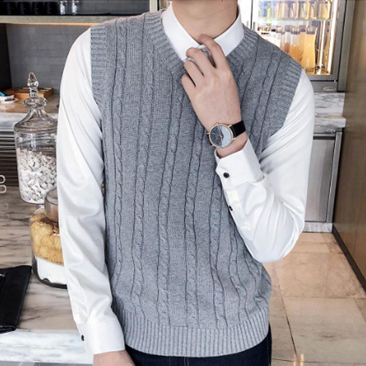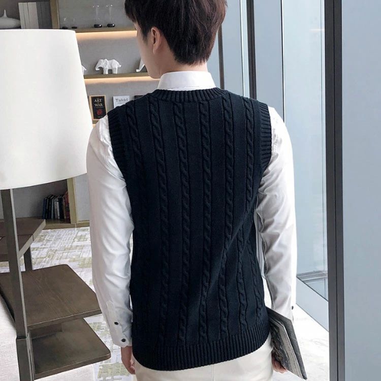 ゆる ゆったり Vネック ノースリーブ リブニット ニットベスト 無地 ニットトップス 防寒 ケーブル編み ベスト セーター メンズ