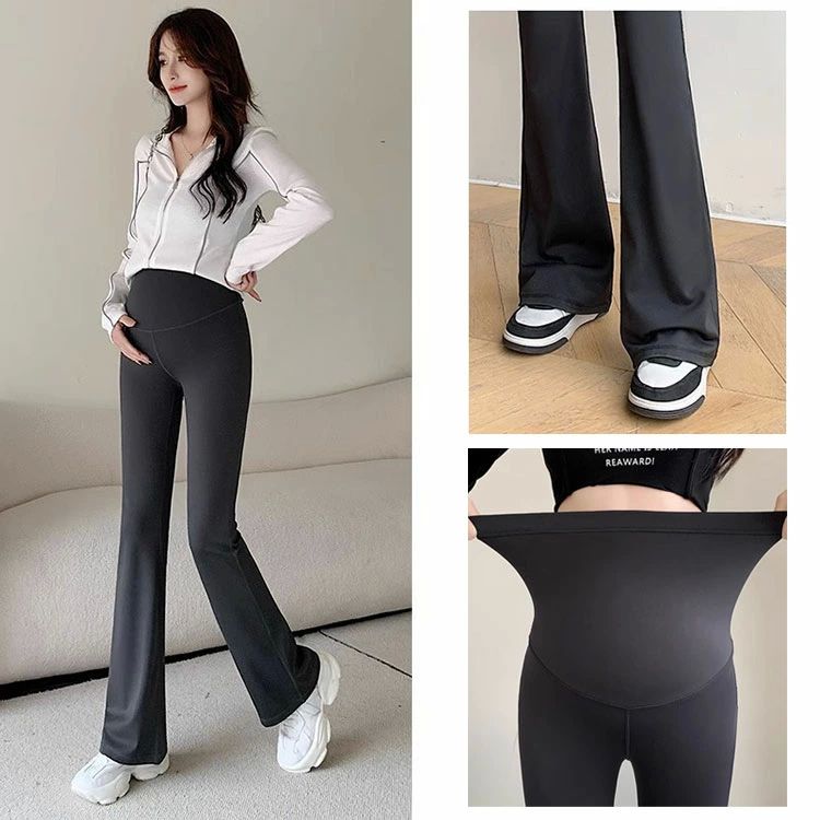 産後 妊婦 グレー 春秋 フレアパンツ ヨガパンツ 妊娠 パンツ 美脚 動きやすい 部屋着 ストレッチ ブラ 産前 ルームパンツ 無地