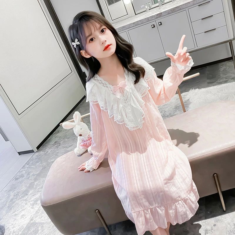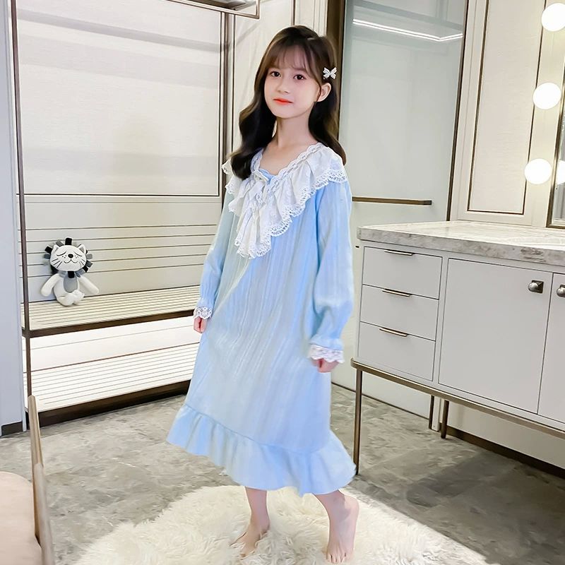 レース 女の子 かわい 秋 部屋着 キッズ 柔らかい 綿 春 パジャマ ルームウェア ネグリジェ 長袖 ワンピース パジャマ 長袖 子供