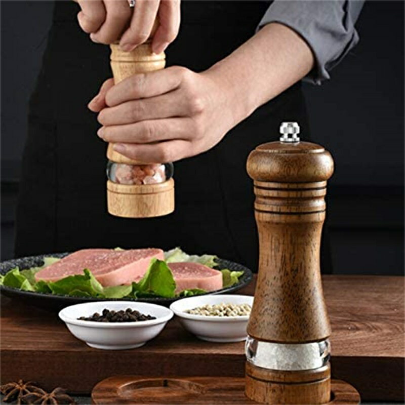 ペッパーミル 2個入り 天然オーク 2本セット 木製 木 おしゃれ ミル スパイス 料理 手動 調味料 水洗い 塩 胡椒 黒胡椒 粗さ 調節 調味料 容器 ソルト ミル 香辛料 キッチン 食卓 木製
