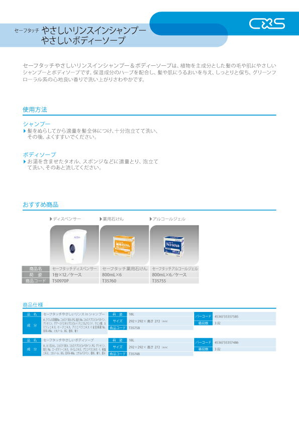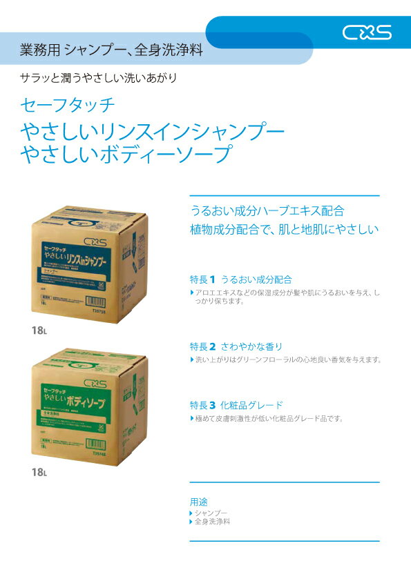 セーフタッチやさしいボディソープ 18L トイレ浴室用洗剤 弱アルカリ 保湿成分 ボディーソープ 植物主成分 ホテル 宿泊施設 ヘルスケア シーバイエス