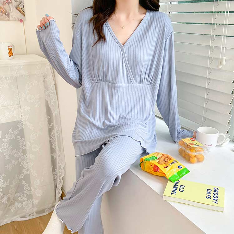 マタニティ パジャマ 授乳 服 上下 セット 長袖 長ズボン 春 夏 秋 カップ付き パッド付き マタニティウェア 授乳服 授乳口 前開き 妊娠 出産 服 出産準備 入院 マタニティ ルームウェア 部屋着 セットアップ ロングパンツ アジャスター付き
