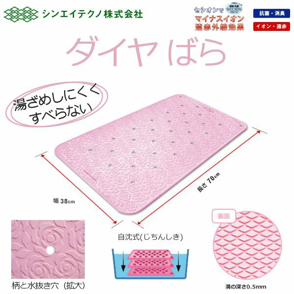 シンエイテクノ ダイヤ ばら SD 30 自沈式 ゴム製すべり止めお風呂マット 70×38×0.3cm