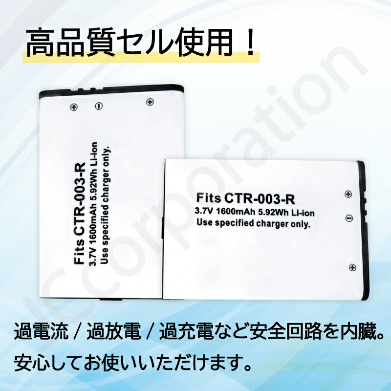 任天堂 (Nintendo) ニンテンドー 2DS 対応 New 2DS LL対応 3DS 対応 Wii U PRO Switch Pro コントローラー 対応 互換バッテリー【メール便送料無料】CTR-003 互換品 バッテリーパック 電池 ゲームバッテリー PSE取得済 高容量 予備バッテリー 予備電池 code:09961