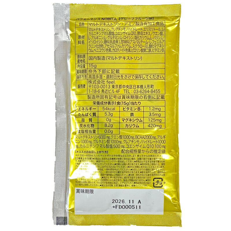 【15g×30袋】NOBITA performance パフォーマンス ノビタ 【正規販売店】【新品】 エネルギー供給 エネルギー変換 筋肉サポート OCT3