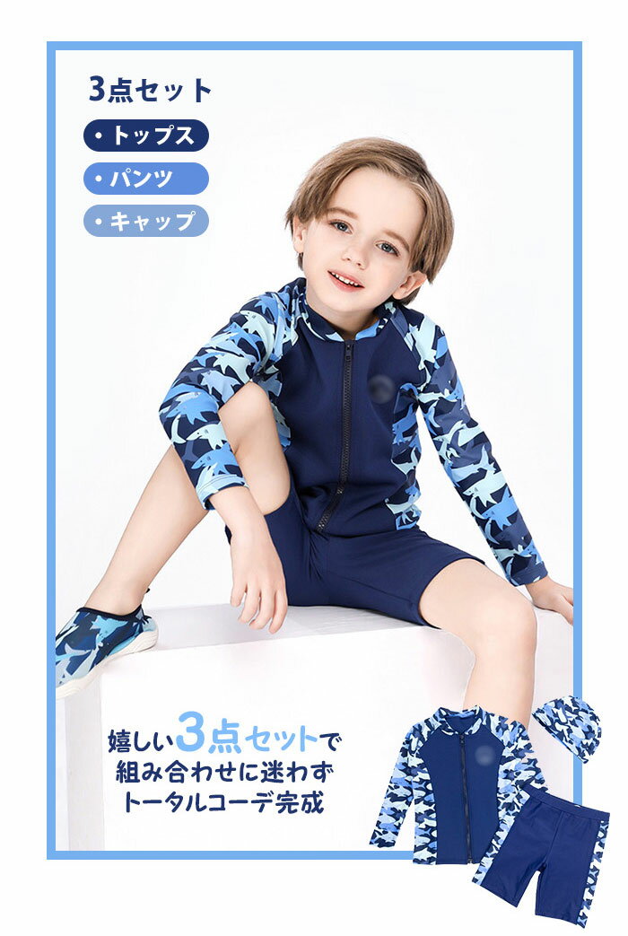 【P2倍!3180円→実質3116円 11/27 01:59まで】キッズ 水着 男の子 ラッシュガード パンツ 帽子付き 長袖ラッシュガード 子供用 紫外線対策 夏 海 プール 上下セットアップ ファスナー UVカット率 99.9% UPF50+ 前開き セパレート ショートパンツ キッズ 小学生